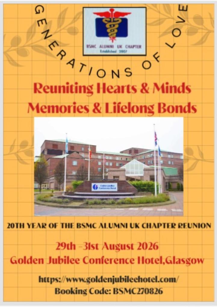 Join us for the 20th BSMC Alumni UK Chapter Reunion – Glasgow, 2026